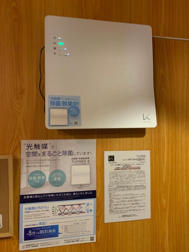 店内は光触媒によるウイルス除菌をしています。(3機稼働中)